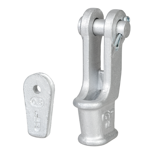 The Green Pin® Open Wedge Socket CP is an open wedge socket with a cotter (split) pin. The socket is made from high tensile steel, while galvanization ensures its long-term durability. Green Pin® Open Wedge Socket CP is available for wire rope with a diameter from 7-8 up to 81-86 mm.
