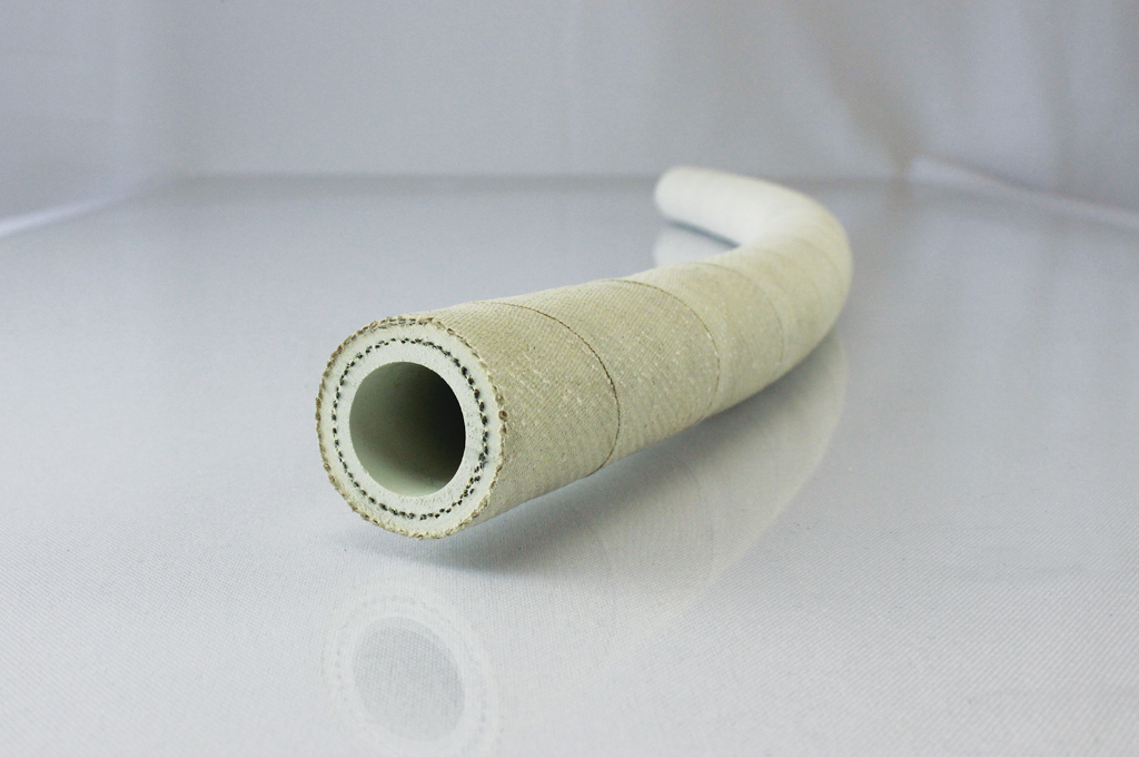 CONSTRUCTION:Tube is EPDM, white, smooth and non-conductive.Cover is a glass fiber ply impregnated with heat and flame-resistant synthetic rubber.Reinforcement is a two-ply synthetic fabric.