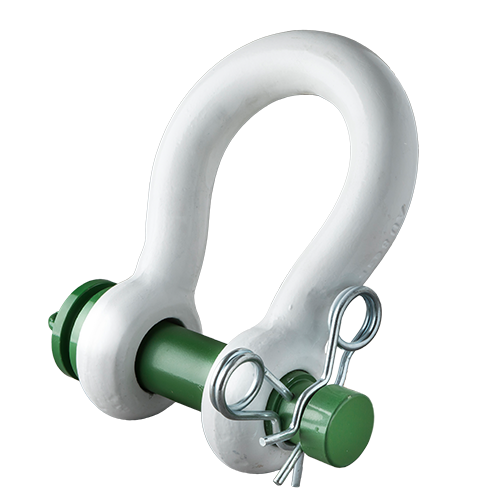 The Green Pin® Spring Pin ROV Shackle is a grade 8 shackle specially developed for (subsea) release operations with a remotely operated vehicle (ROV). The mechanism has been designed so that disassembling the shackle and releasing the load under water is easy and efficient. The shackle's two spring pins ensure its safe use and prevent the unintentional release of the load. Furthermore, the white coating of the Green Pin® Spring Pin ROV Shackle optimizes visibility under water and ensures its long-term durability. The Green Pin® Spring Pin ROV Shackle is available in a range with a working load limit from 6.5 up to 85 ton.