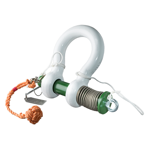 The Green Pin® Spring Release ROV Shackle is a grade 8 shackle developed specifically for (subsea) release operations with a remotely operated vehicle (ROV). The shackle has a specially designed quick release system that can be manipulated easily by a hydraulically operated ROV arm, without compromising safety. By activating the spring the shackle is disassembled quickly and safely. The Green Pin® Spring Release ROV Shackle is also suitable for use in extremely low temperatures (down to -60 °C / -76°F). Assembly of the shackle can be done by hand for the smaller sizes. A compression tool (sold separately) should be used for sizes with a working load limit of 42.5 ton and up. Of course, the Green Pin® Spring Release ROV Shackle conforms to a wide range of certifications. The Green Pin® Spring Release ROV Shackle is available in a range with a working load limit from 12 up to 150 ton.